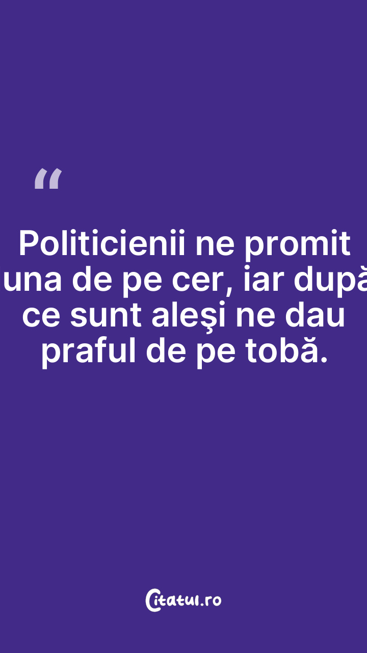 Politicienii ne promit luna de pe cer, iar după ce sunt aleşi ne dau praful de pe tobă.