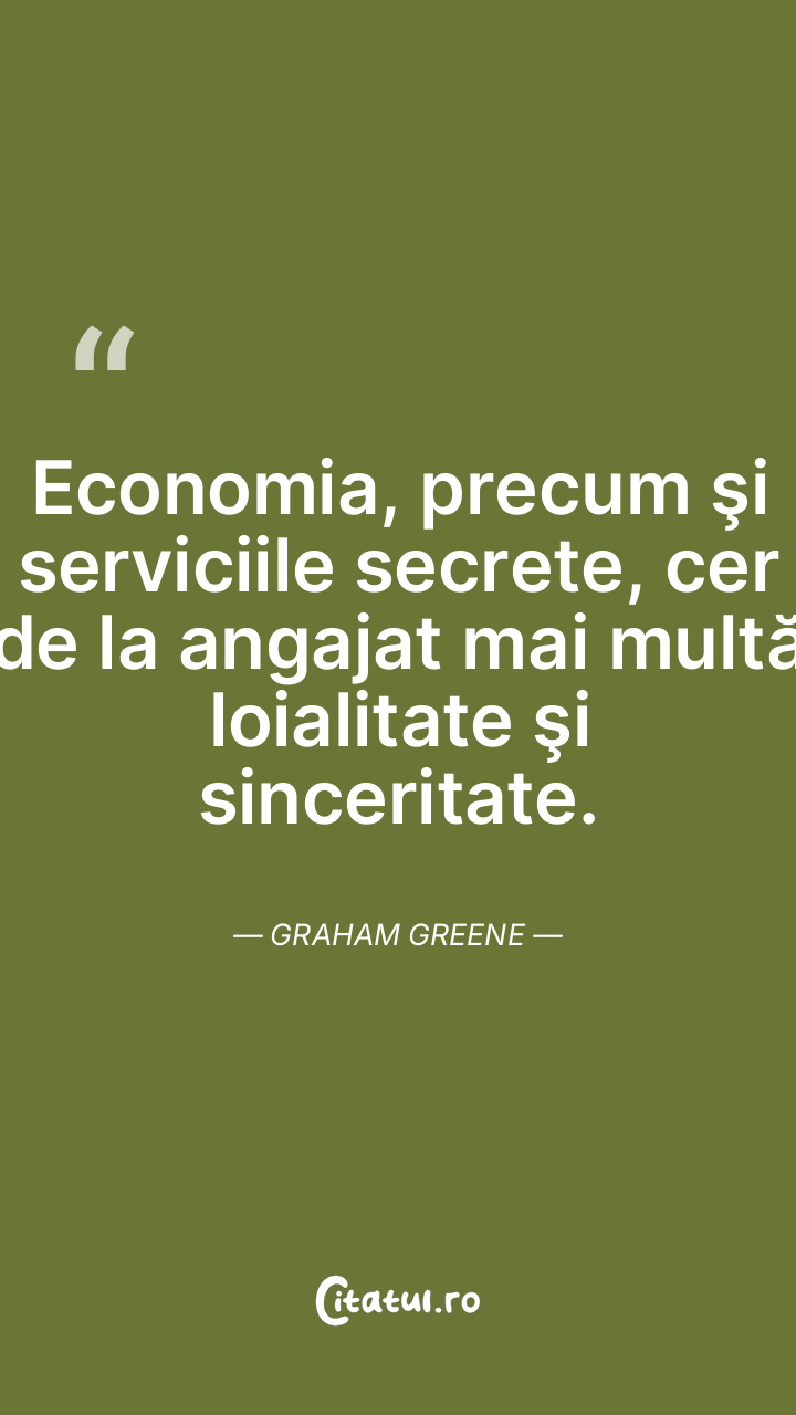 Economia, precum şi serviciile secrete, cer de la angajat mai multă loialitate şi sinceritate. Graham Greene