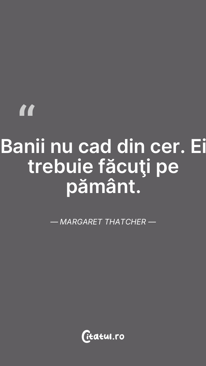 Banii nu cad din cer. Ei trebuie făcuţi pe pământ. Margaret Thatcher