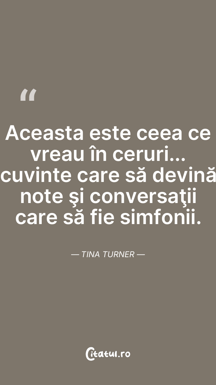 Aceasta este ceea ce vreau în ceruri... cuvinte care să devină note şi conversaţii care să fie simfonii. Tina Turner