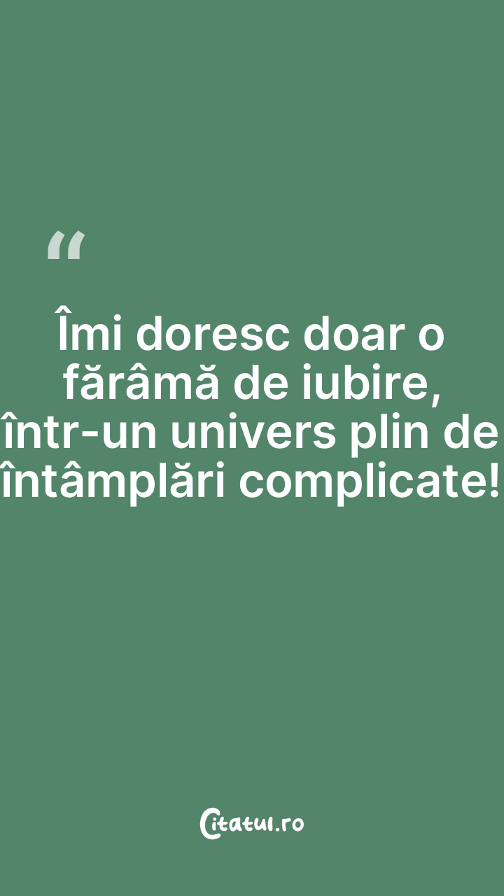Îmi doresc doar o fărâmă de iubire, într-un univers plin de întâmplări complicate!