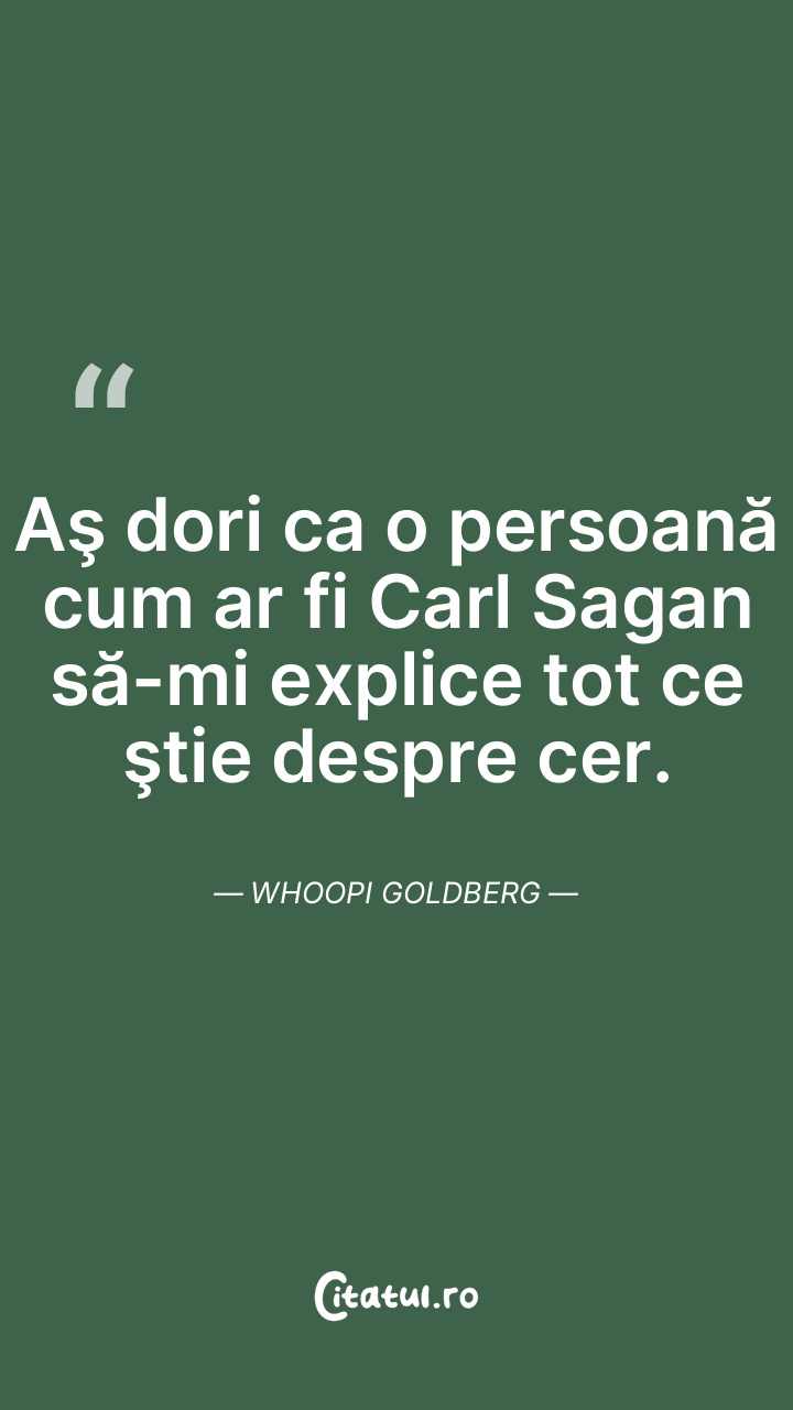 Aş dori ca o persoană cum ar fi Carl Sagan să-mi explice tot ce ştie despre cer. Whoopi Goldberg