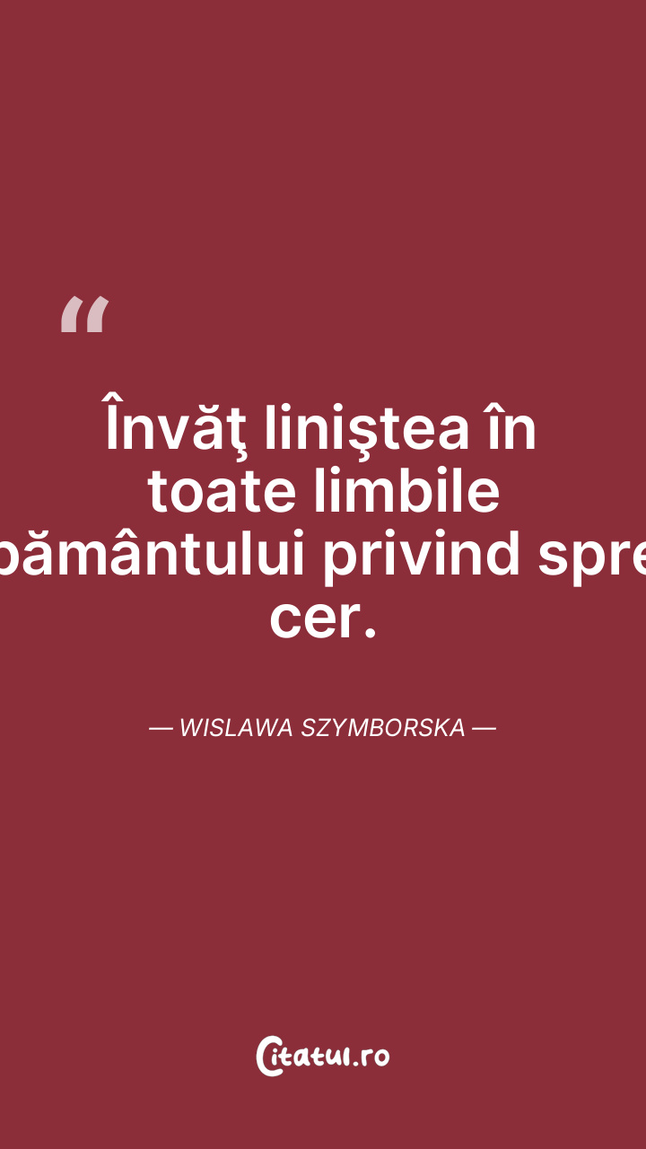 Învăţ liniştea în toate limbile pământului privind spre cer. Wislawa Szymborska