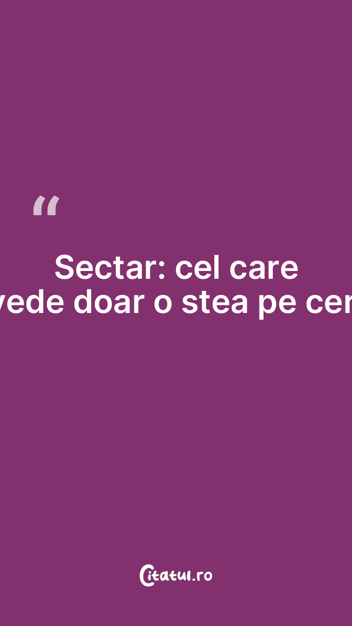 Sectar: cel care vede doar o stea pe cer. ...