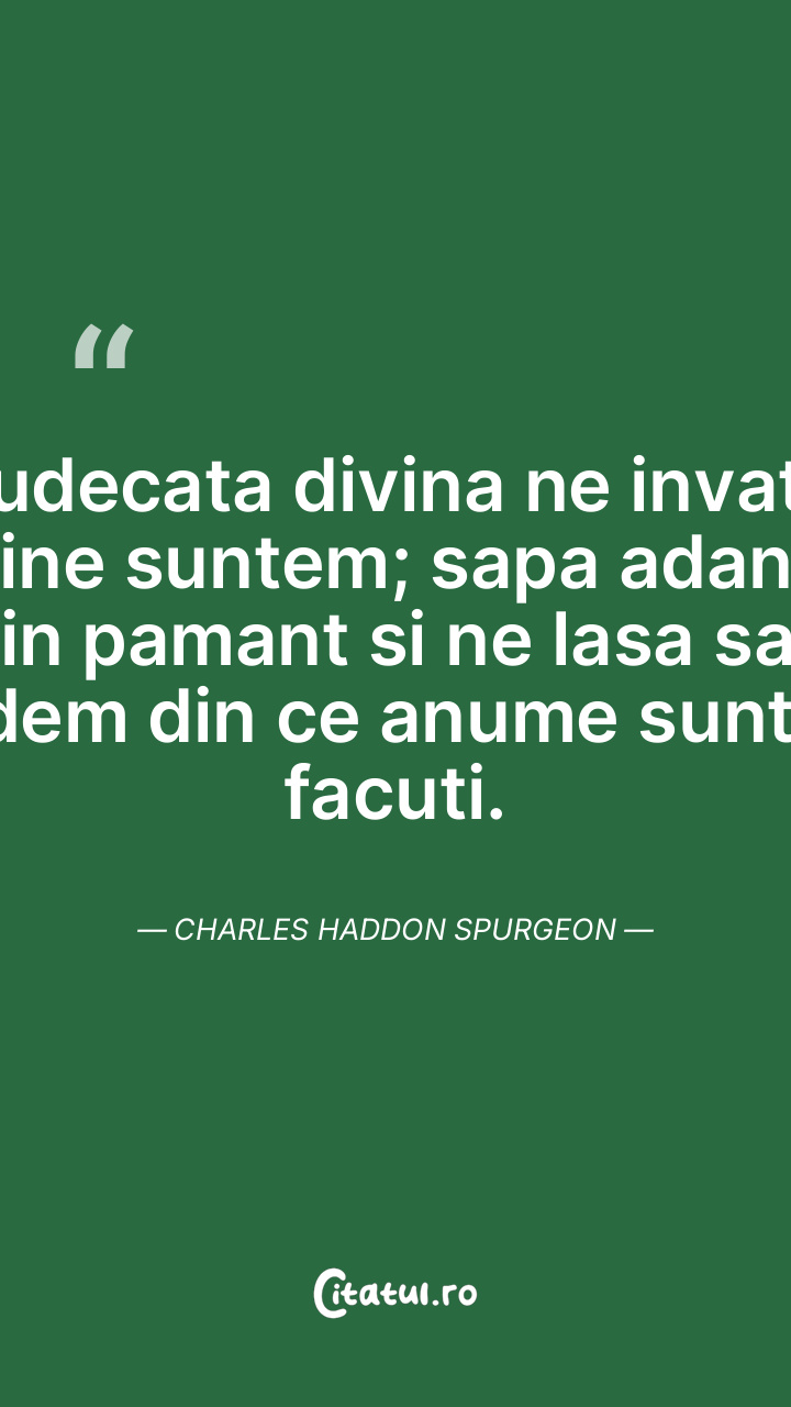 Judecata divina ne invata cine suntem; sapa adanc in pamant si ne lasa sa vedem din ce anume suntem facuti. Charles Haddon Spurgeon