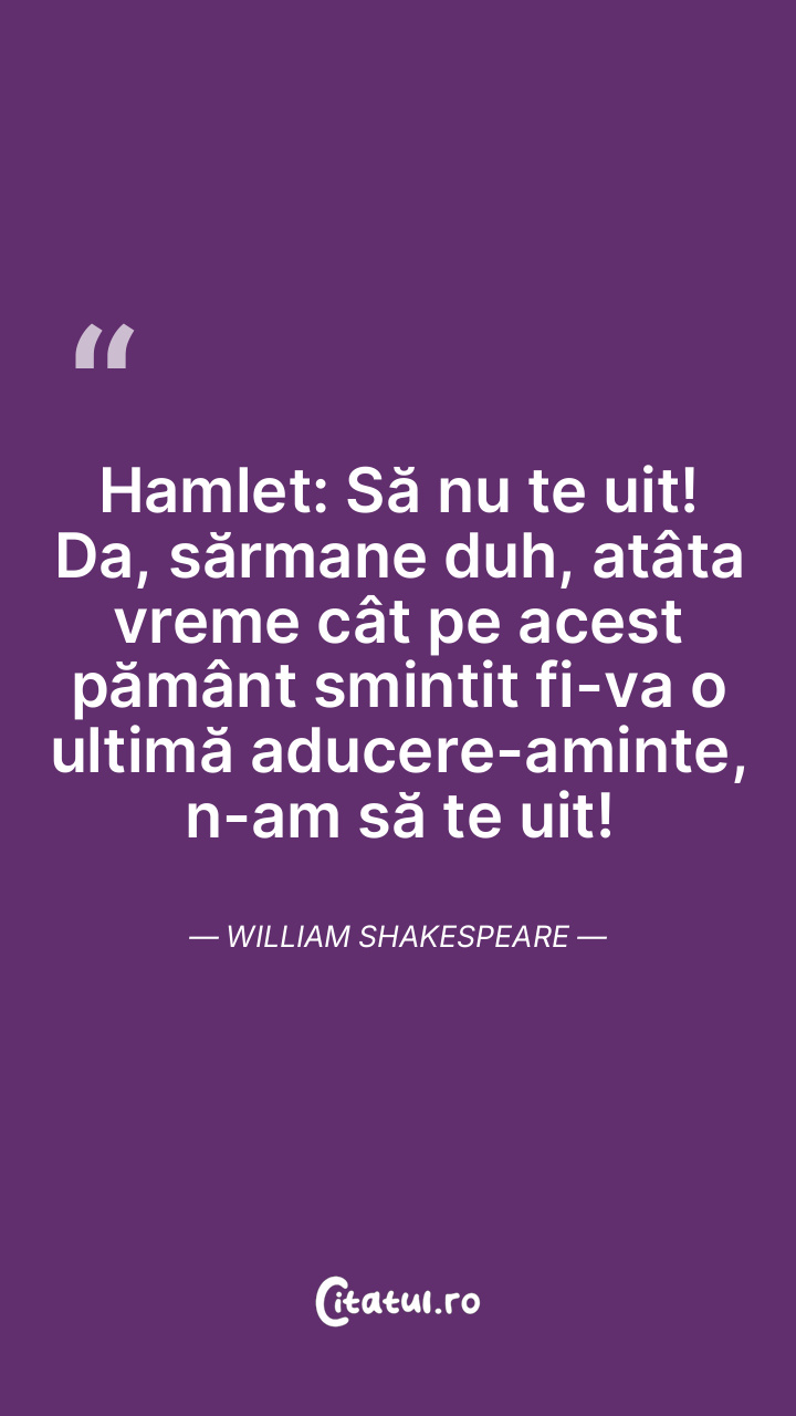 Hamlet: Să nu te uit! Da, sărmane duh, atâta vreme cât pe acest pământ smintit fi-va o ultimă aducere-aminte, n-am să te uit! William Shakespeare