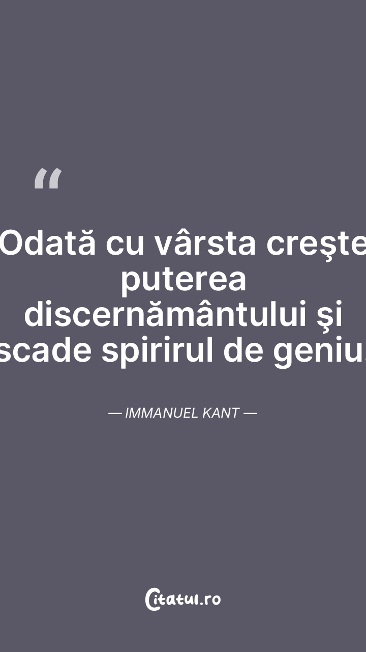 Odată cu vârsta creşte puterea discernământului şi scade spirirul de geniu. Immanuel Kant