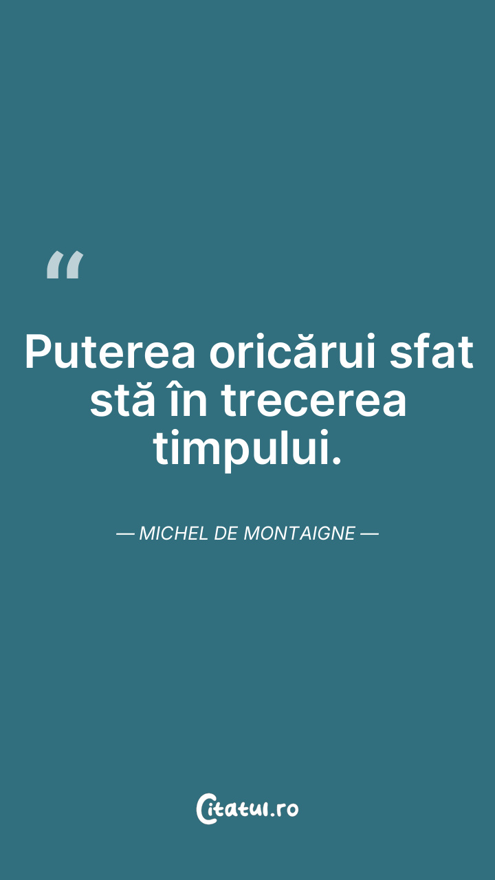 Puterea oricărui sfat stă în trecerea timpului. Michel de Montaigne