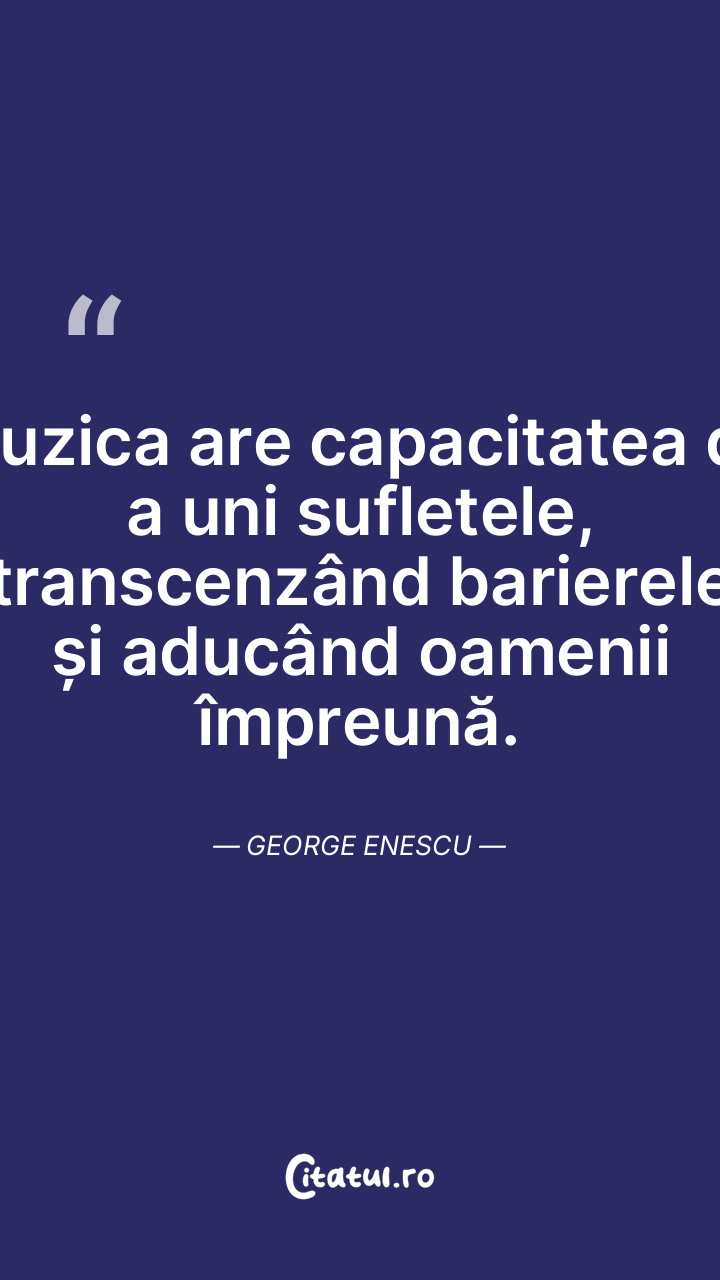 Muzica are capacitatea de a uni sufletele, transcenzând barierele și aducând oamenii împreună. George Enescu