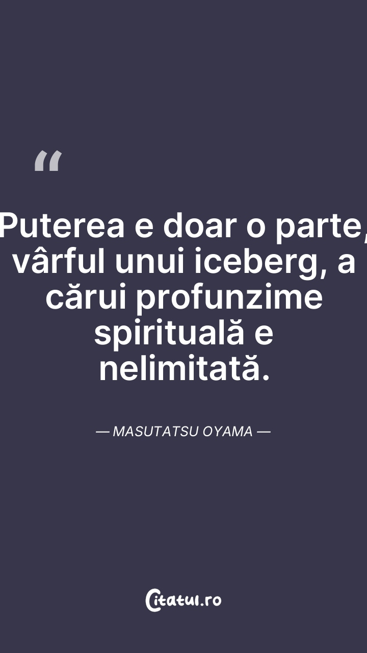 Puterea e doar o parte, vârful unui iceberg, a cărui profunzime spirituală e nelimitată. Masutatsu Oyama