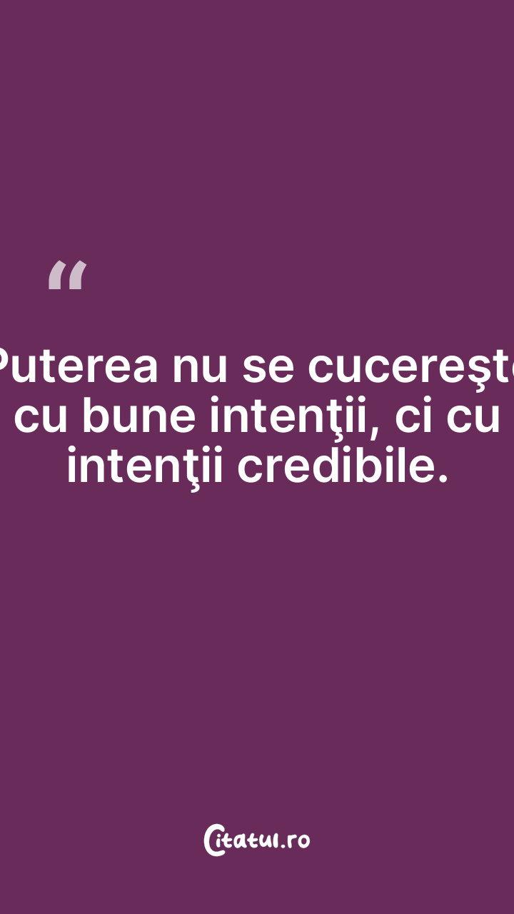 Puterea nu se cucereşte cu bune intenţii, ci cu intenţii credibile.