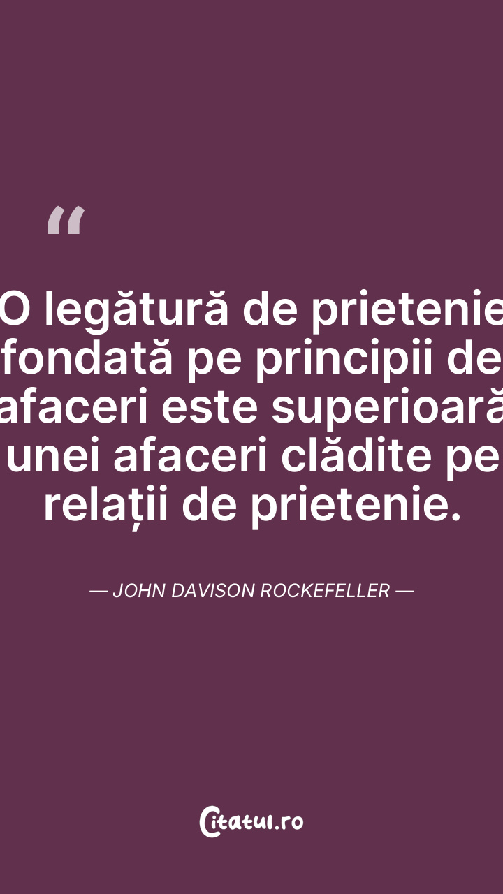 O legătură de prietenie fondată pe principii de afaceri este superioară unei afaceri clădite pe relații de prietenie. John Davison Rockefeller