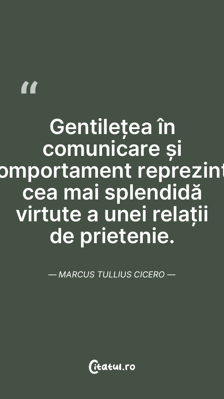 Gentilețea în comunicare și comportament reprezintă cea mai splendidă virtute a unei relații de prietenie. Marcus Tullius Cicero