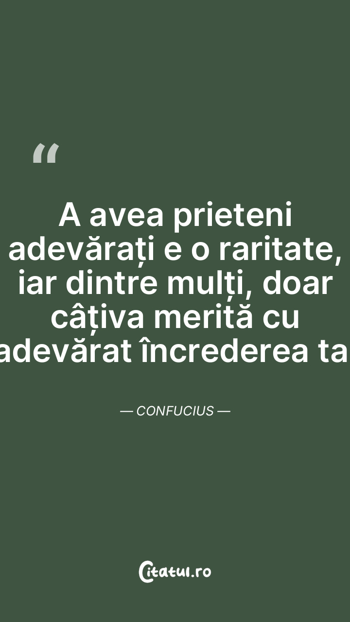 A avea prieteni adevărați e o raritate, iar dintre mulți, doar câțiva merită cu adevărat încrederea ta. Confucius