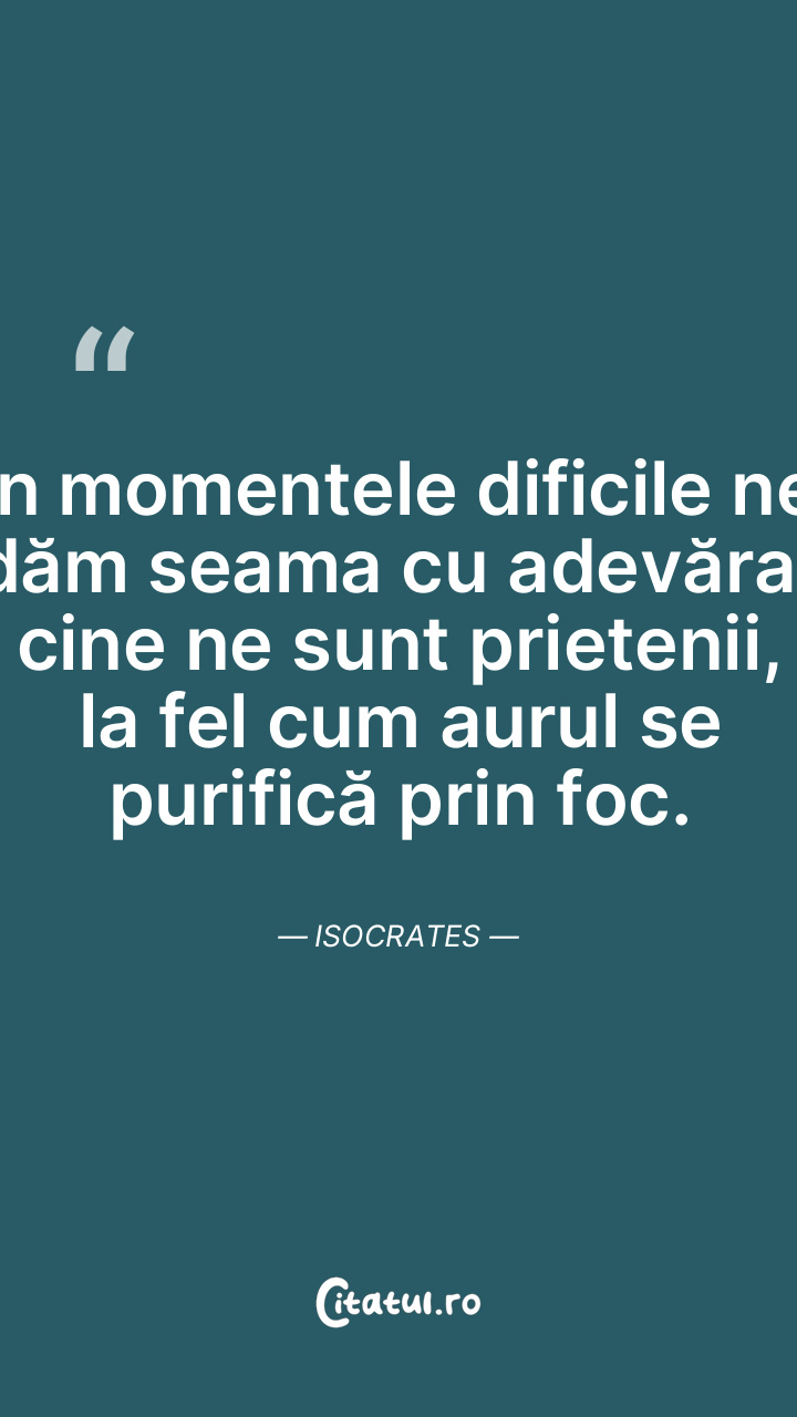 În momentele dificile ne dăm seama cu adevărat cine ne sunt prietenii, la fel cum aurul se purifică prin foc. Isocrates