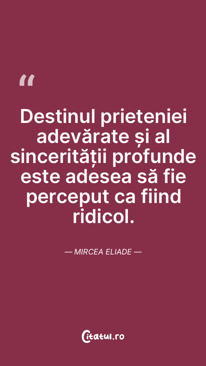 Destinul prieteniei adevărate și al sincerității profunde este adesea să fie perceput ca fiind ridicol. Mircea Eliade