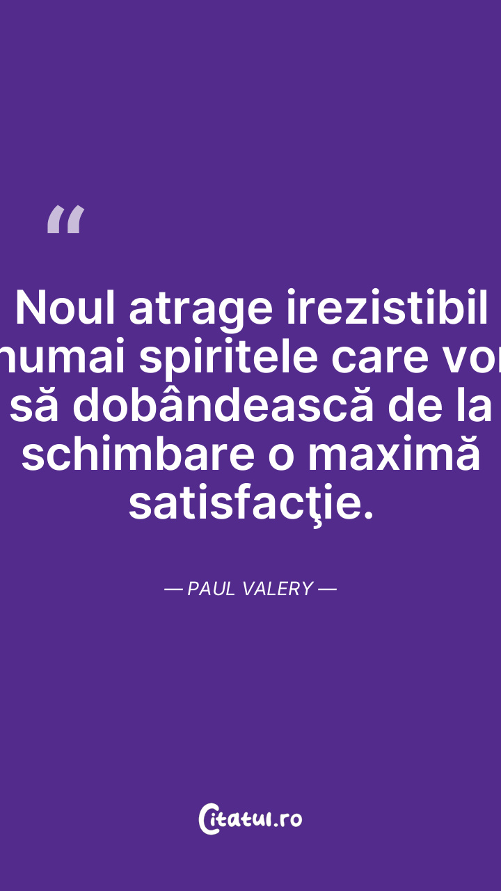 Noul atrage irezistibil numai spiritele care vor să dobândească de la schimbare o maximă satisfacţie. Paul Valery