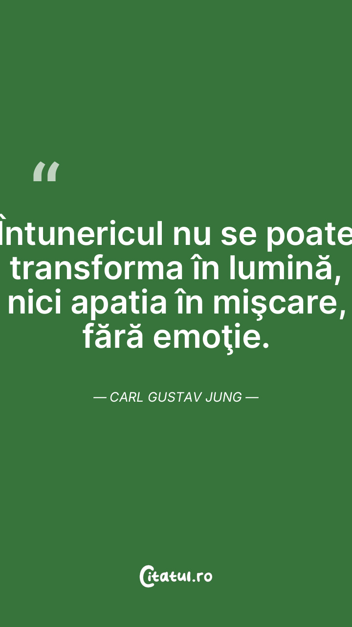 Întunericul nu se poate transforma în lumină, nici apatia în mişcare, fără emoţie. Carl Gustav Jung