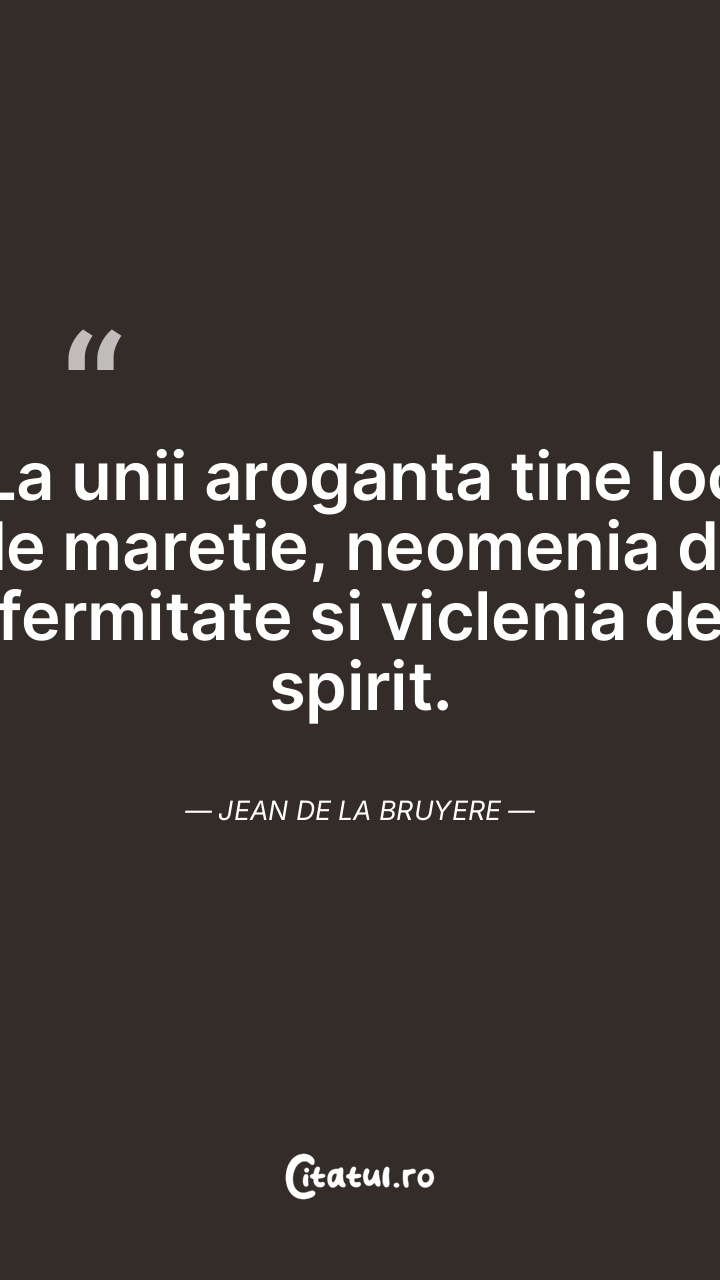 La unii aroganta tine loc de maretie, neomenia de fermitate si viclenia de spirit. Jean de La Bruyere