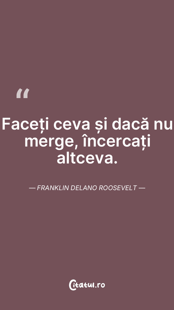 Faceți ceva și dacă nu merge, încercați altceva. Franklin Delano Roosevelt