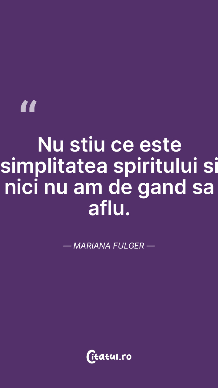 Nu stiu ce este simplitatea spiritului si nici nu am de gand sa aflu. Mariana Fulger