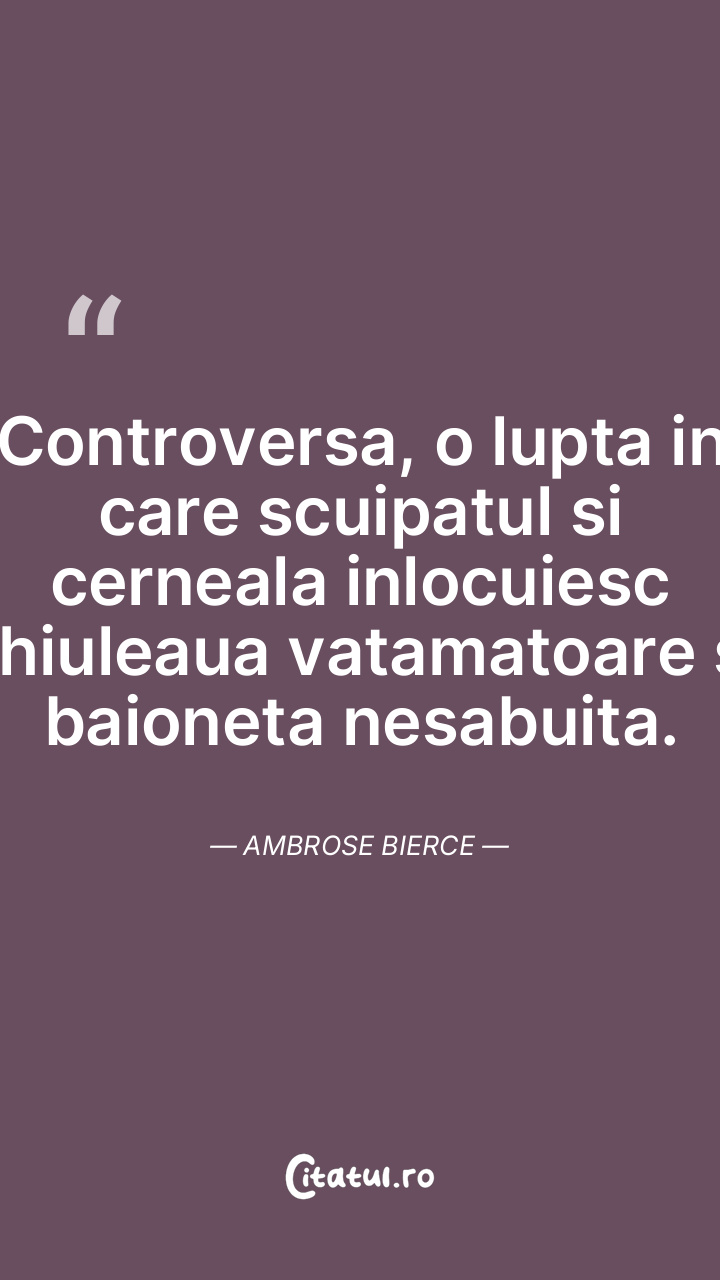 Controversa, o lupta in care scuipatul si cerneala inlocuiesc ghiuleaua vatamatoare si baioneta nesabuita. Ambrose Bierce