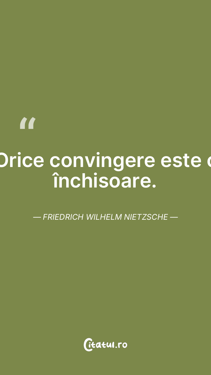 Orice convingere este o închisoare. Friedrich Wilhelm Nietzsche