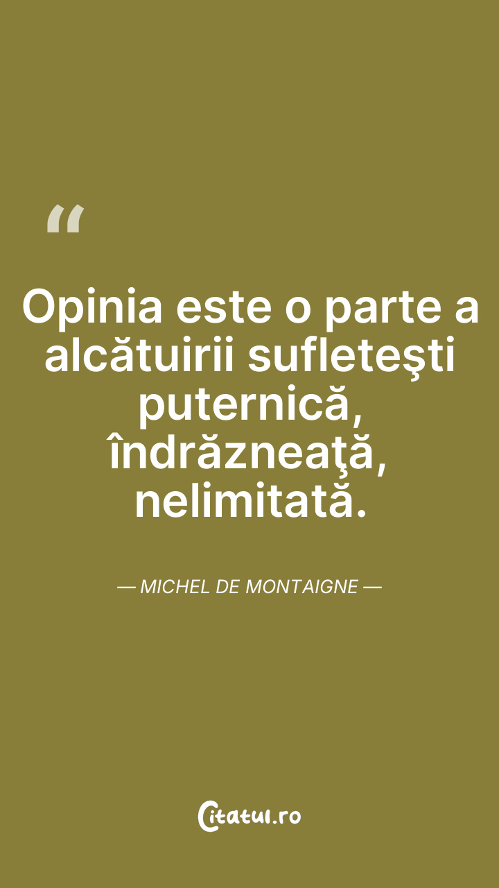 Opinia este o parte a alcătuirii sufleteşti puternică, îndrăzneaţă, nelimitată. Michel de Montaigne