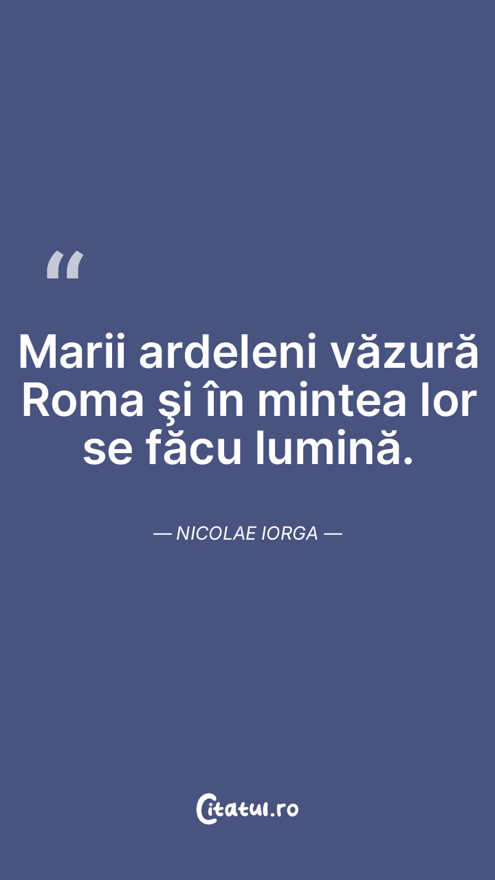 Marii ardeleni văzură Roma şi în mintea lor se făcu lumină. Nicolae Iorga