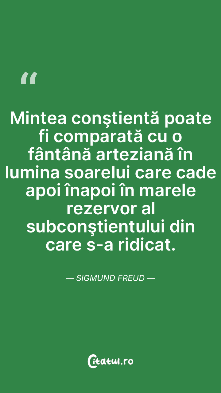 Mintea conştientă poate fi comparată cu o fântână arteziană în lumina soarelui care cade apoi înapoi în marele rezervor al subconştientului din care s-a ridicat. Sigmund Freud