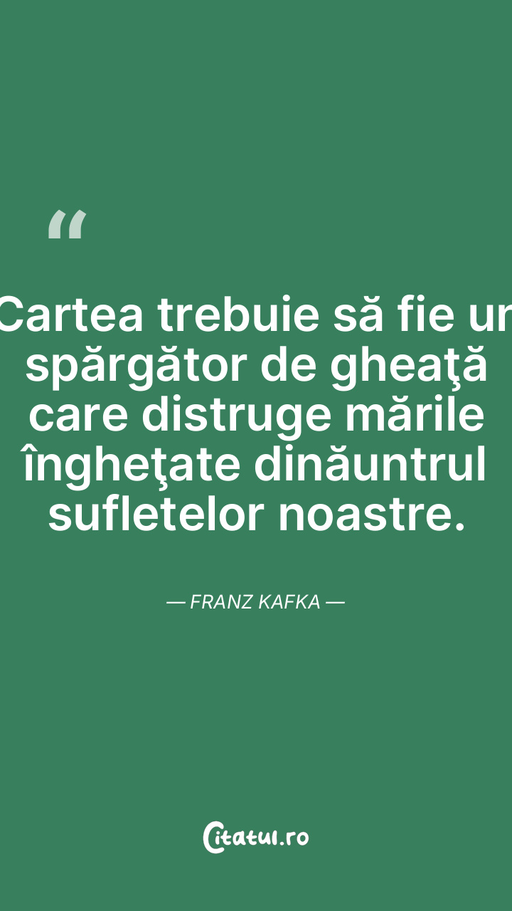 Cartea trebuie să fie un spărgător de gheaţă care distruge mările îngheţate dinăuntrul sufletelor noastre. Franz Kafka