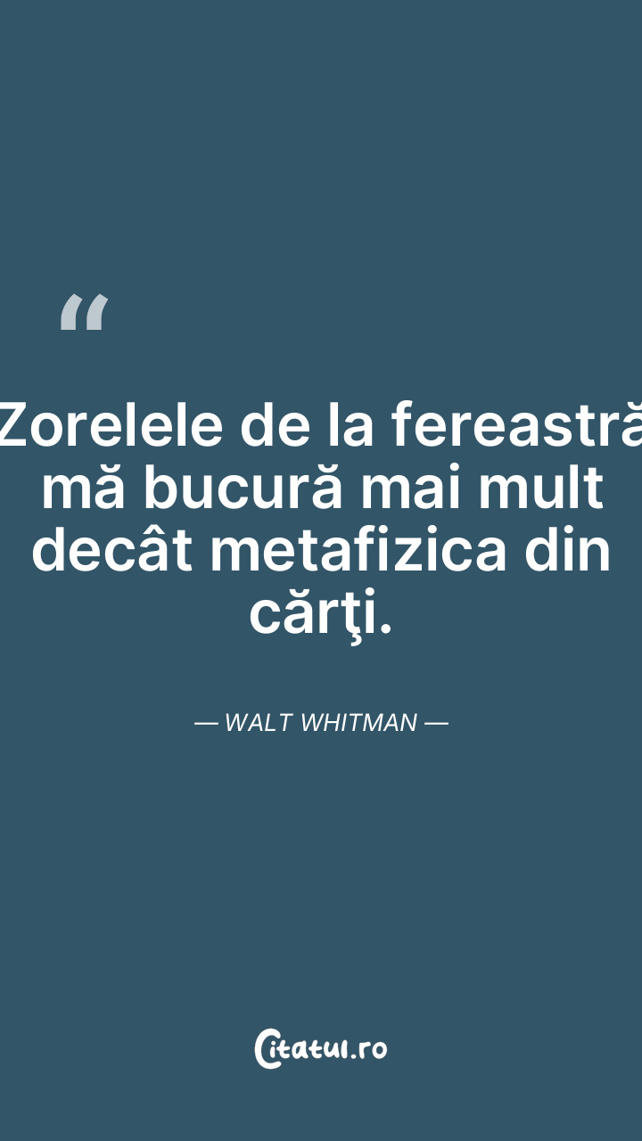 Zorelele de la fereastră mă bucură mai mult decât metafizica din cărţi. Walt Whitman