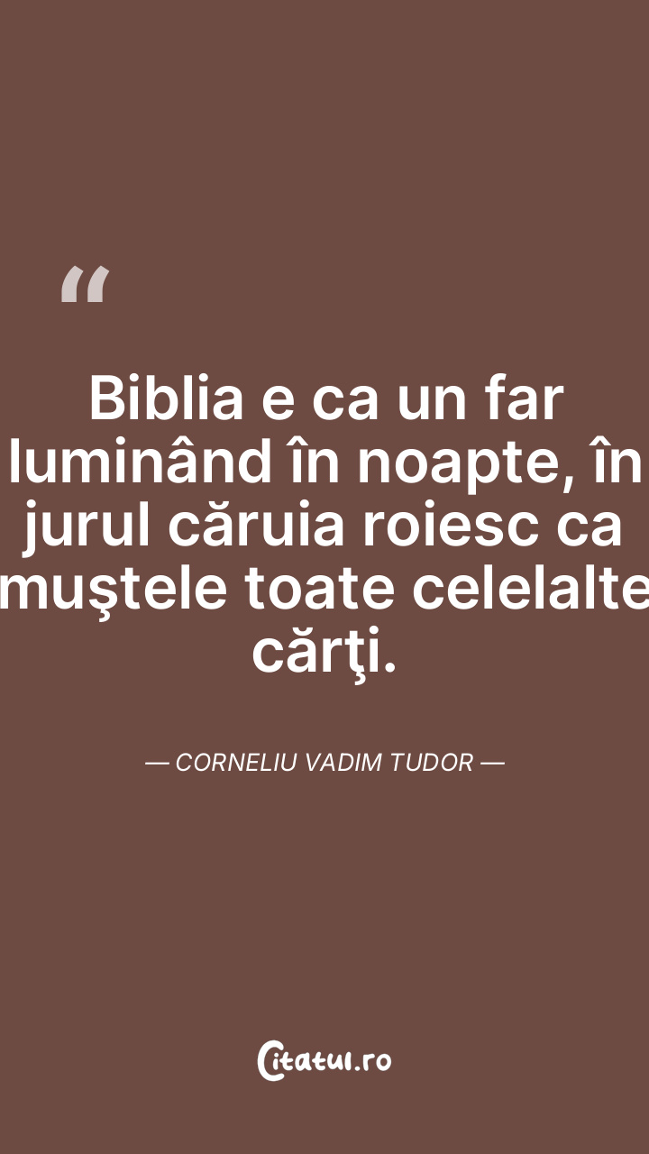 Biblia e ca un far luminând în noapte, în jurul căruia roiesc ca muştele toate celelalte cărţi. Corneliu Vadim Tudor