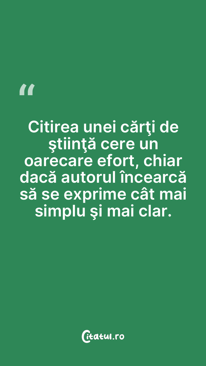 Citirea unei cărţi de ştiinţă cere un oarecare efort, chiar dacă autorul încearcă să se exprime cât mai simplu şi mai clar.