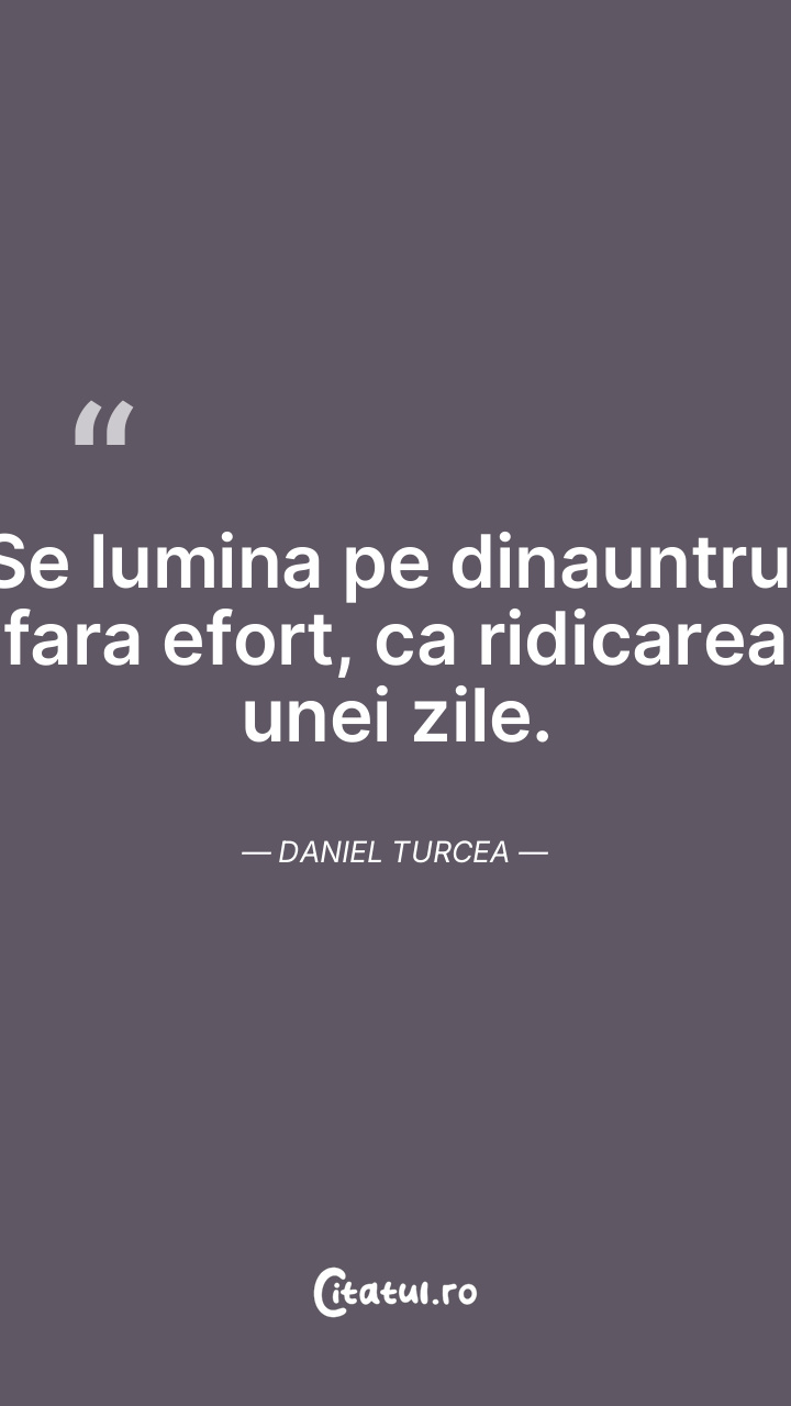 Se lumina pe dinauntru, fara efort, ca ridicarea unei zile. Daniel Turcea
