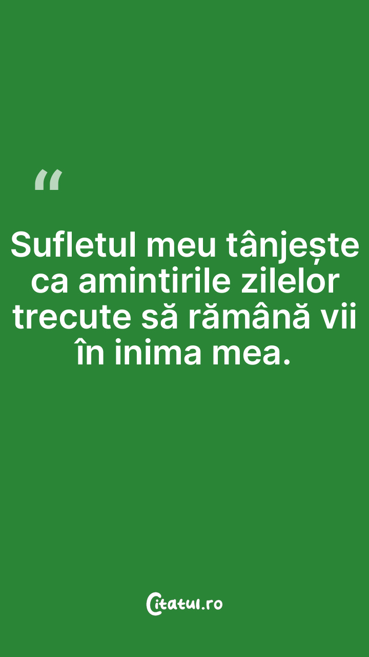 Sufletul meu tânjește ca amintirile zilelor trecute să rămână vii în inima mea.