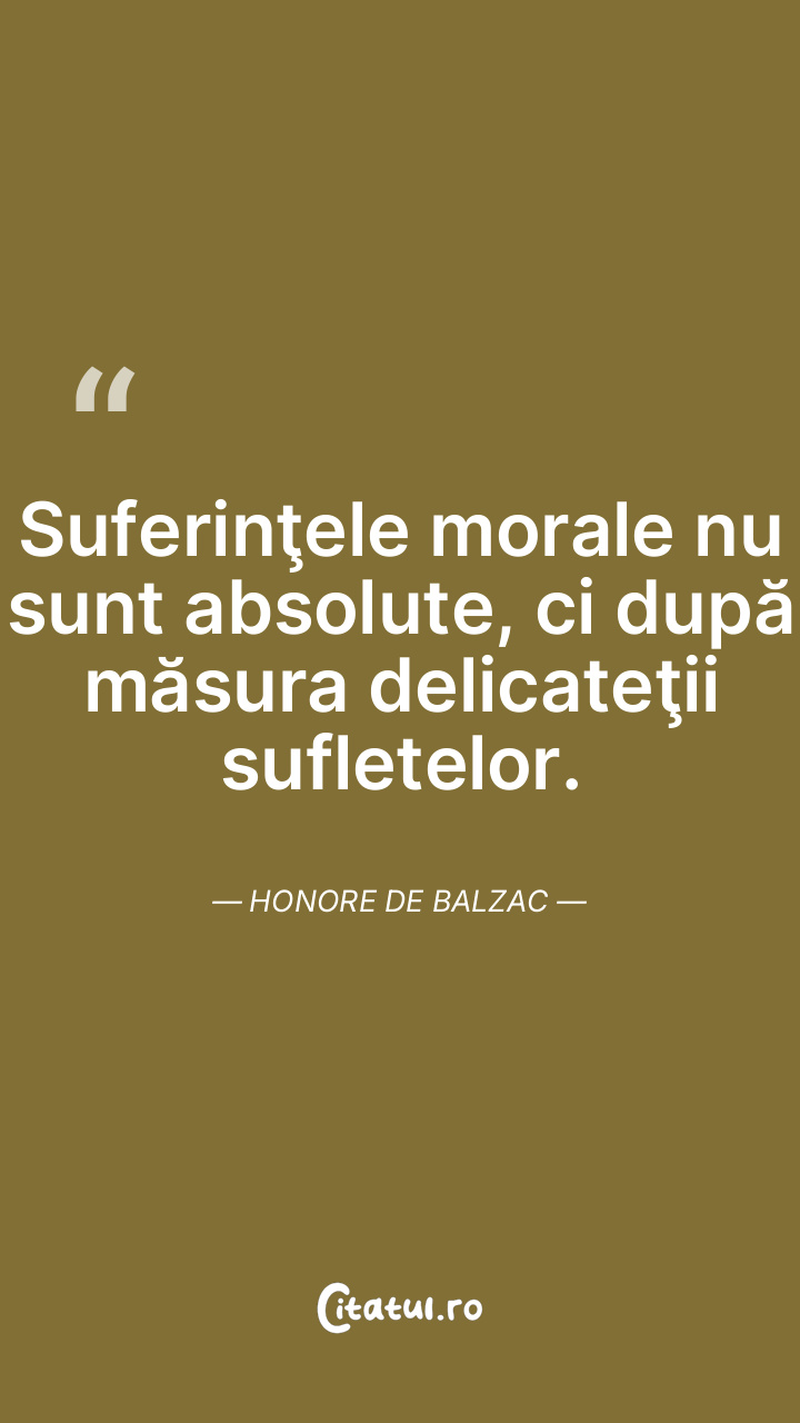 Suferinţele morale nu sunt absolute, ci după măsura delicateţii sufletelor. Honore de Balzac