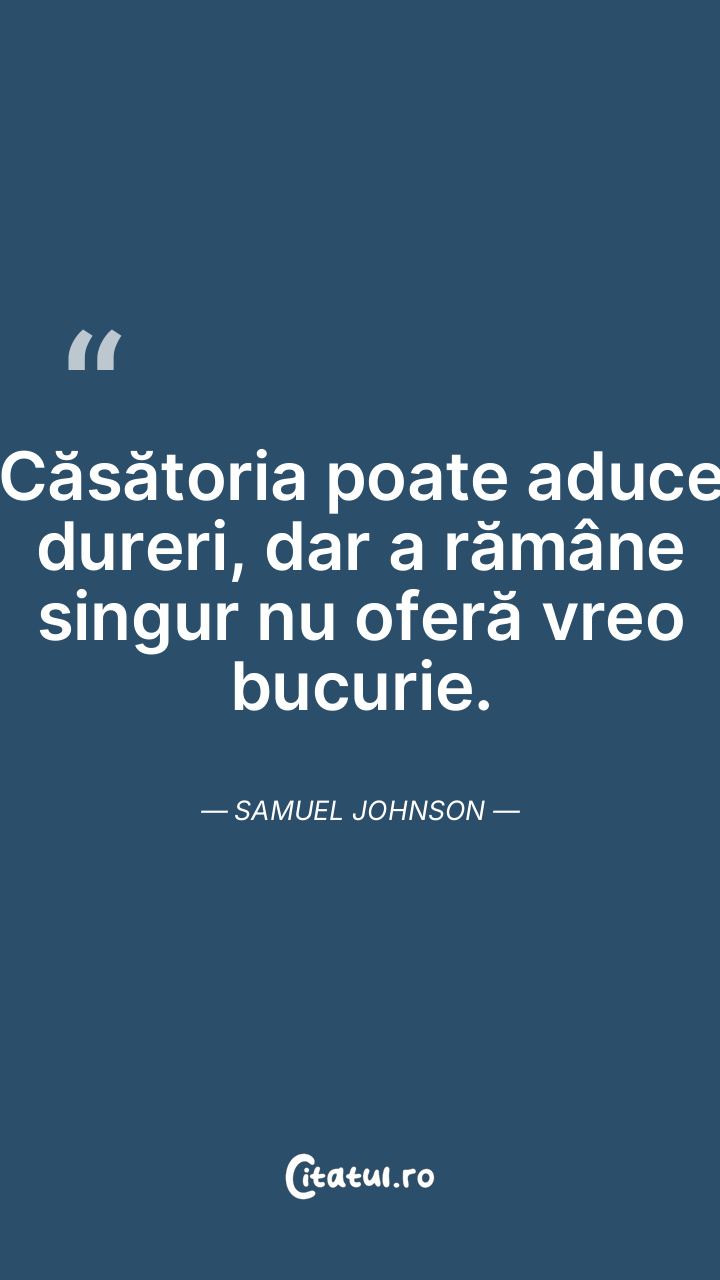 Căsătoria poate aduce dureri, dar a rămâne singur nu oferă vreo bucurie. Samuel Johnson
