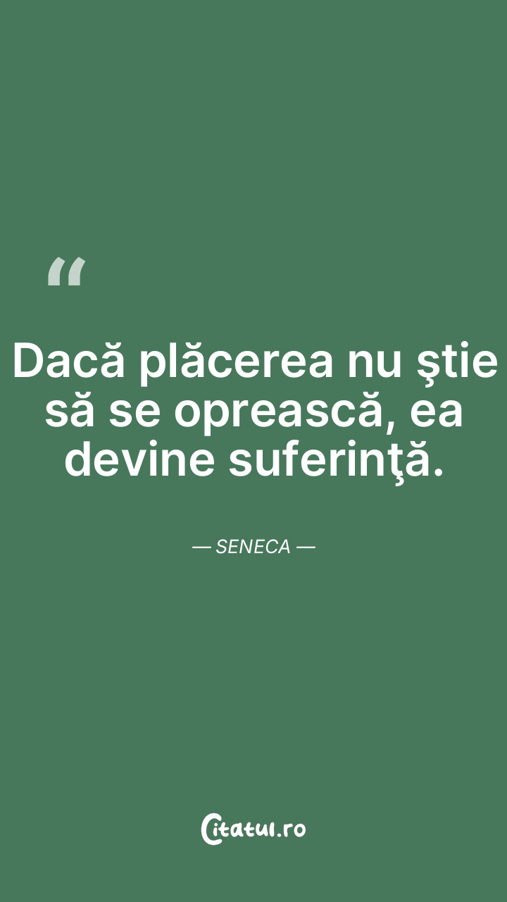 Dacă plăcerea nu ştie să se oprească, ea devine suferinţă. Seneca