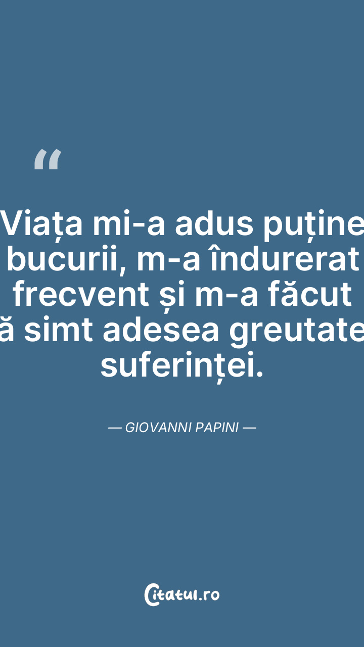 Viața mi-a adus puține bucurii, m-a îndurerat frecvent și m-a făcut să simt adesea greutatea suferinței. Giovanni Papini