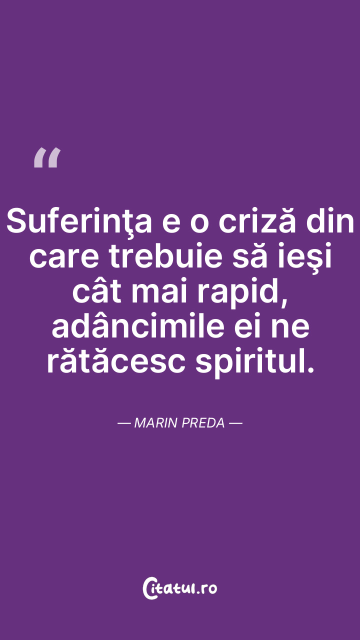 Suferinţa e o criză din care trebuie să ieşi cât mai rapid, adâncimile ei ne rătăcesc spiritul. Marin Preda