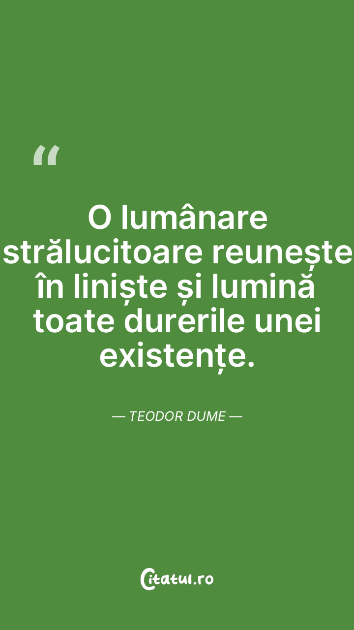 O lumânare strălucitoare reunește în liniște și lumină toate durerile unei existențe. Teodor Dume