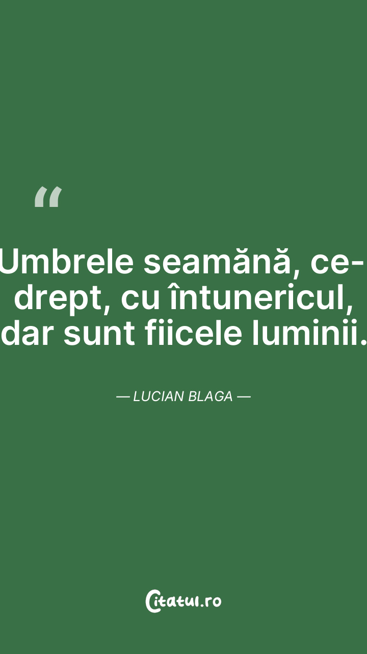 Umbrele seamănă, ce-i drept, cu întunericul, dar sunt fiicele luminii. Lucian Blaga