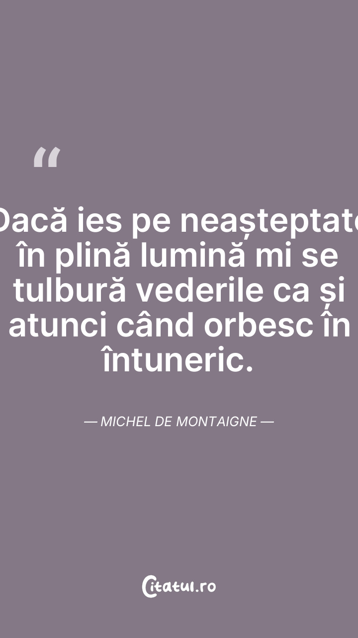 Dacă ies pe neașteptate în plină lumină mi se tulbură vederile ca și atunci când orbesc în întuneric. Michel de Montaigne