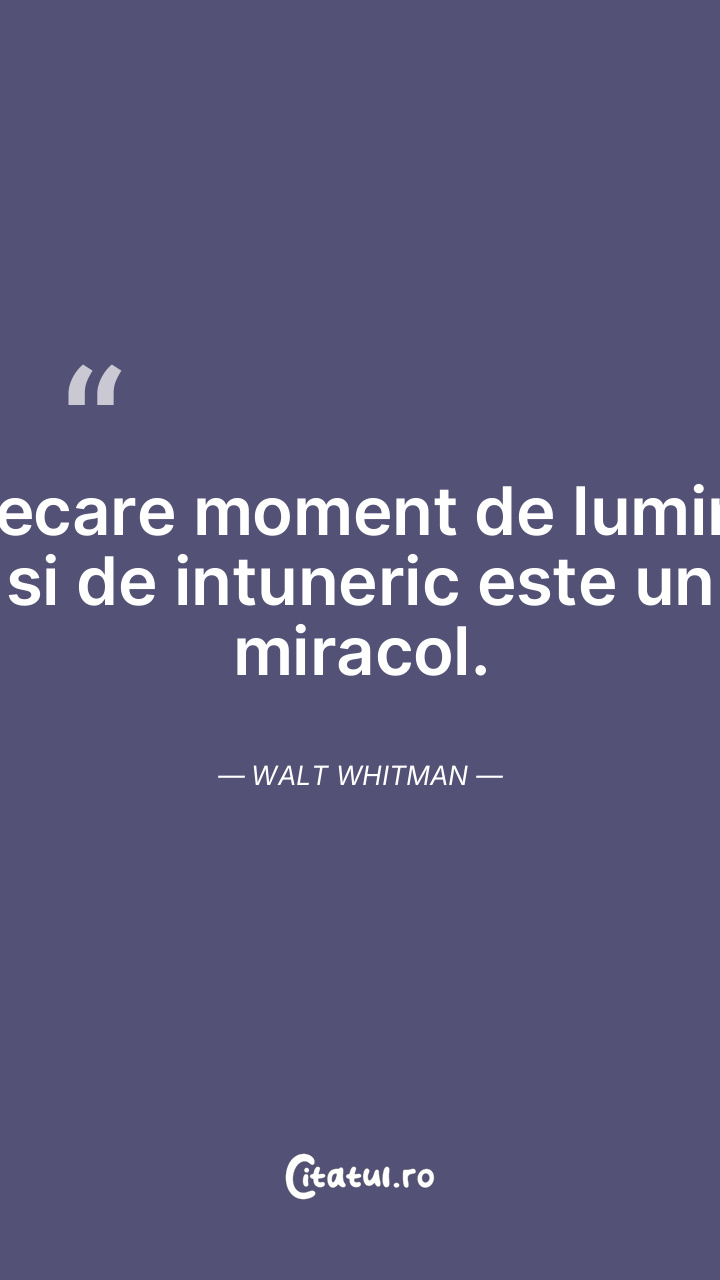 Fiecare moment de lumina si de intuneric este un miracol. Walt Whitman