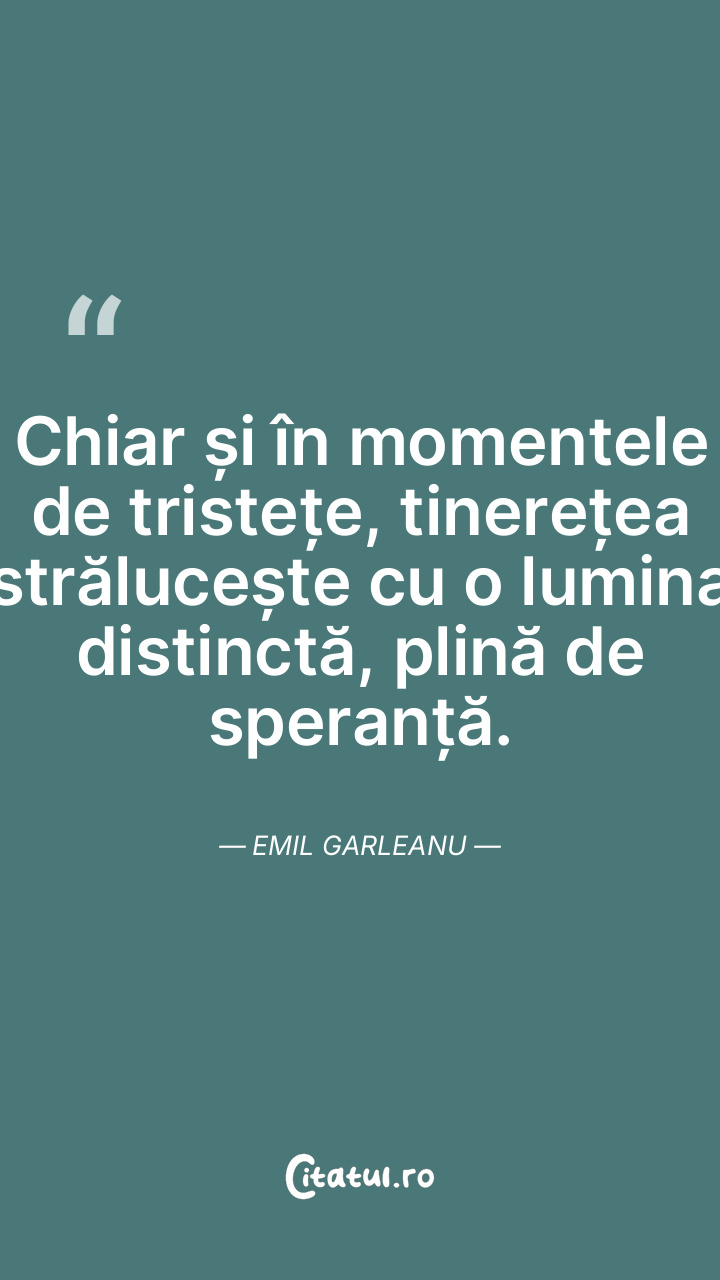 Chiar și în momentele de tristețe, tinerețea strălucește cu o lumina distinctă, plină de speranță. Emil Garleanu