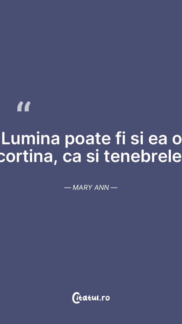 Lumina poate fi si ea o cortina, ca si tenebrele. Mary Ann