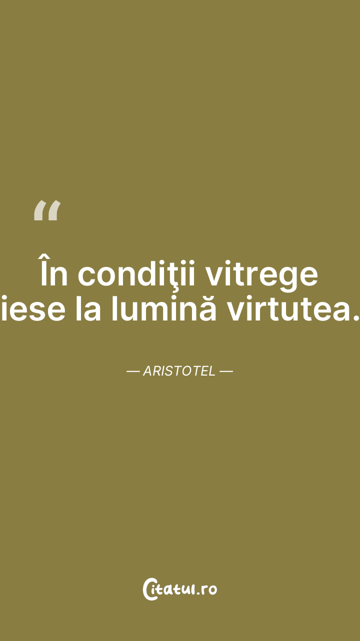 În condiţii vitrege iese la lumină virtutea. Aristotel