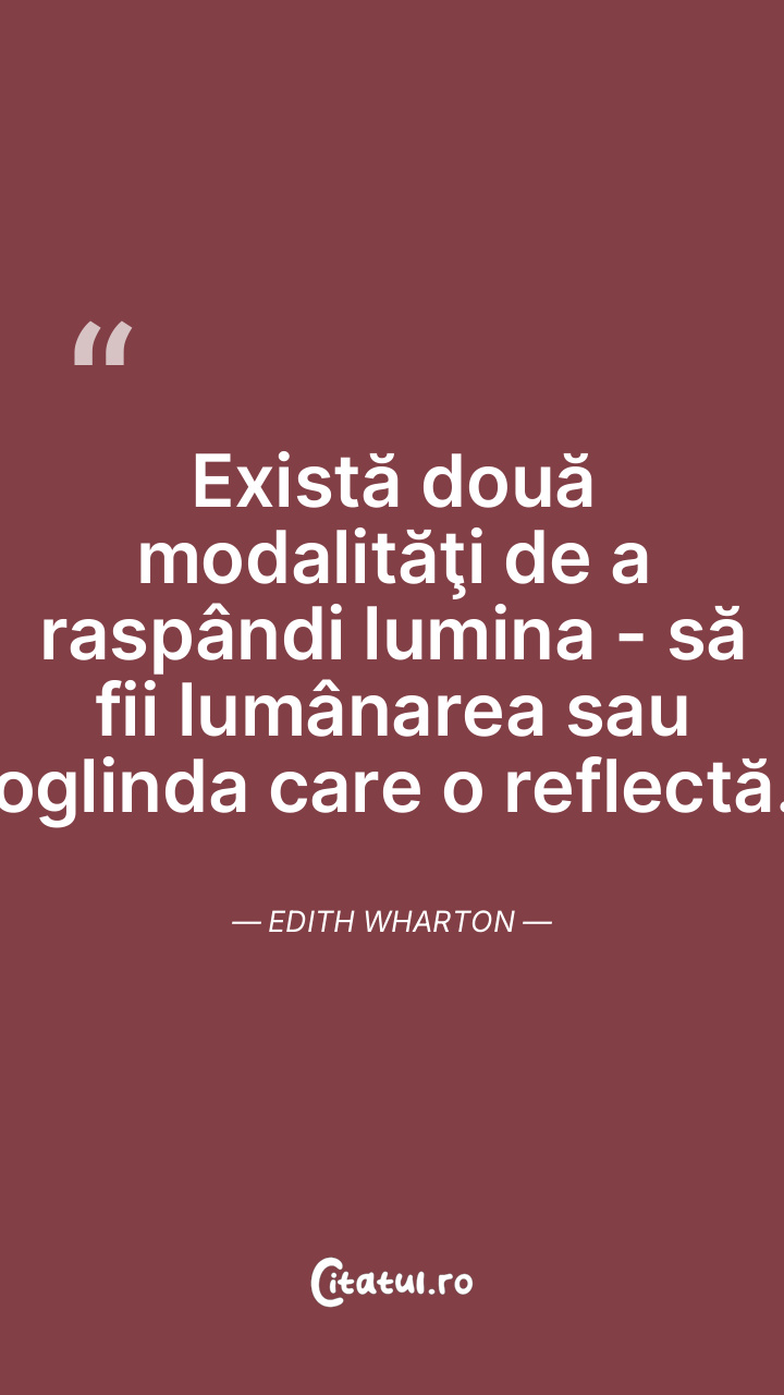 Există două modalităţi de a raspândi lumina - să fii lumânarea sau oglinda care o reflectă. Edith Wharton