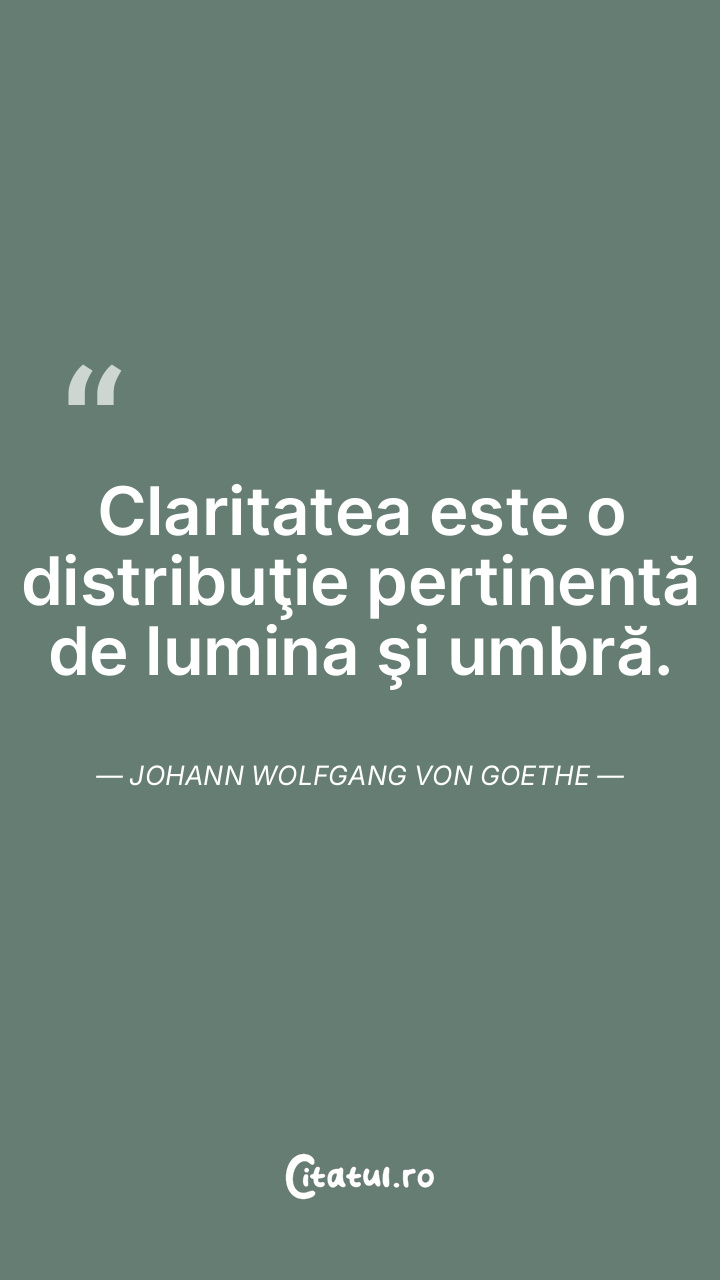 Claritatea este o distribuţie pertinentă de lumina şi umbră. Johann Wolfgang von Goethe